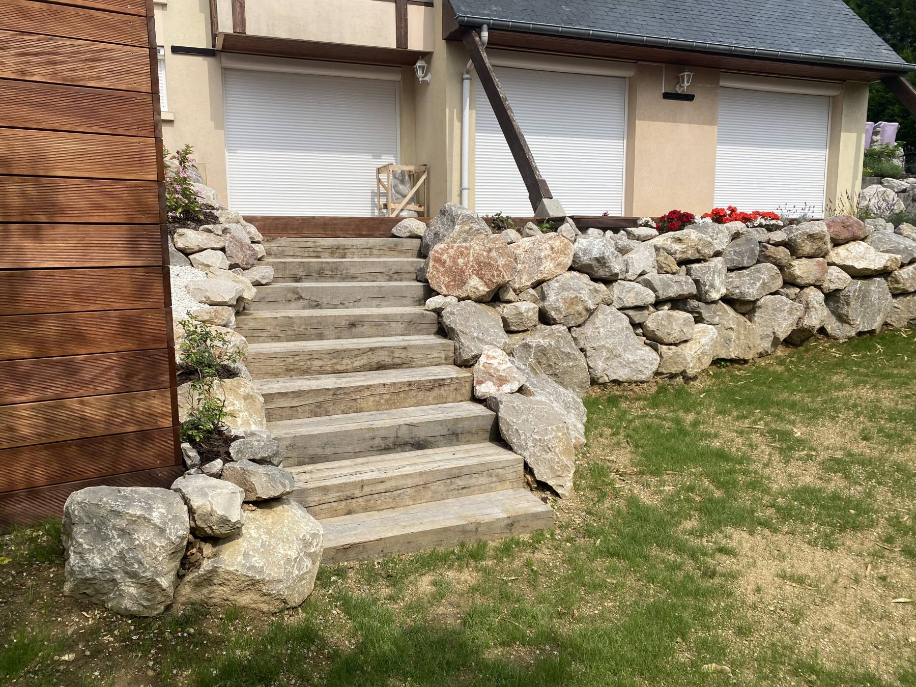 Terasse bois et pierre