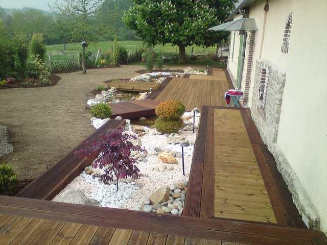Allée en bois et jardin zen